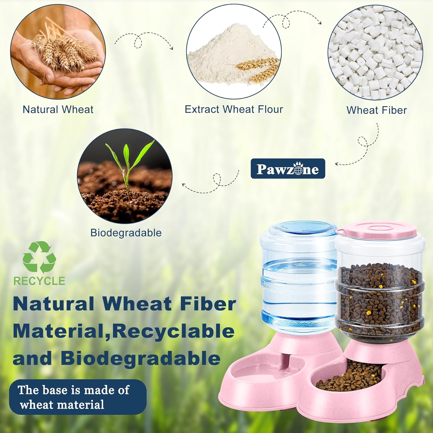 - MATERIAL OF PET WATER DISPENSER: Gravity Dog feeder Made of safe, natural food grade wheat material. Easy to move,continuous cat feeder can be used anywhere