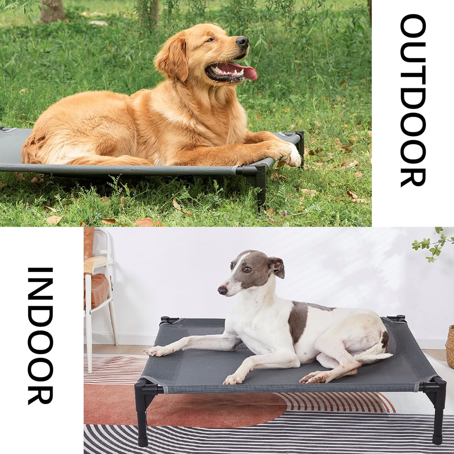 pettycare Elevated Outdoor Dog Bed - Dog Cots for Large Dogs XL, Heavy Duty Raised Cot Waterproof, Cooling Pets Bed with Washable Durable Teslin Mesh and Non Slip Feet, 49 Inches, Grey