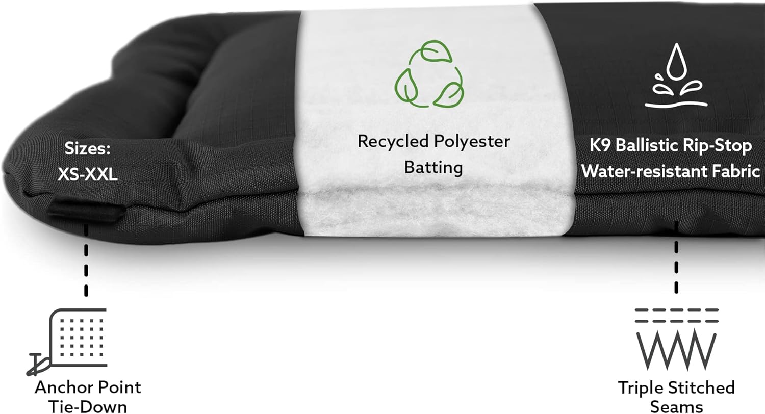 - Durable Ripstop Ballistic Exterior: The heavy-duty cover will withstand scratching, digging, and occasional mouthing or chewing. Great for dogs that like to get a little rough with their beds! For dogs that tend to chew heavily when crated, especially due to anxiety, we recommend one of our Chew Proof Armored Padded Dog Crate beds instead.