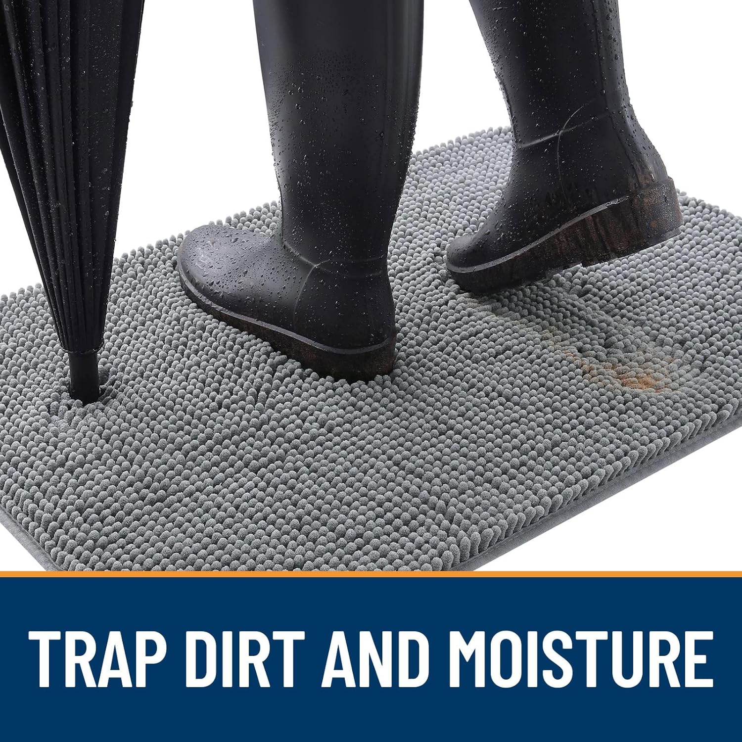 OLANLY Dog Door Mat for Muddy Paws 30x20, Absorbs Moisture and Dirt, Absorbent Non-Slip Washable Doormat, Quick Dry Chenille Mud Mat for Dogs, Entry Indoor Entryway Carpet for Inside Floor, Grey