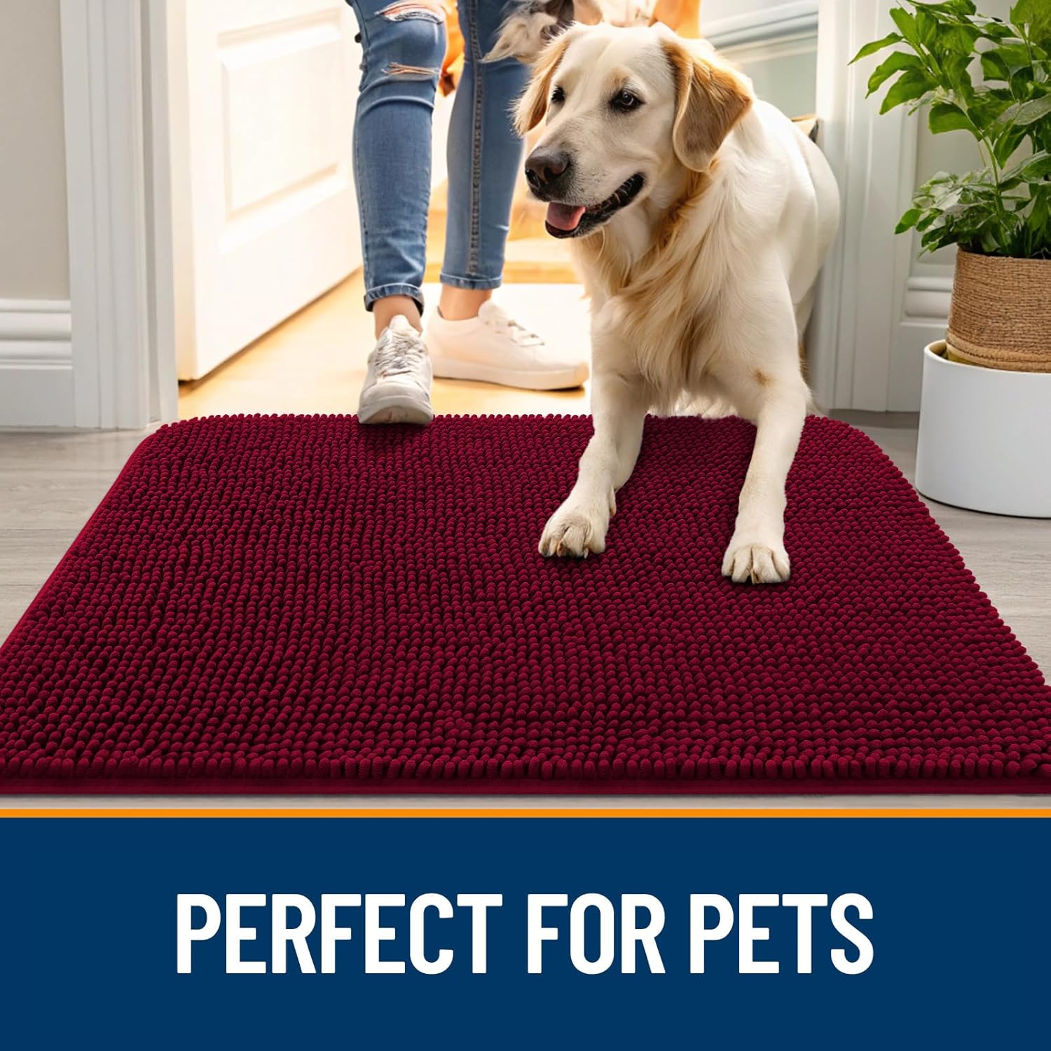 OLANLY Dog Door Mat for Muddy Paws 48x30, Absorbs Moisture and Dirt, Absorbent Non-Slip Washable Doormat, Quick Dry Chenille Mud Mat for Dogs, Entry Indoor Entryway Carpet for Inside Floor, Burgundy