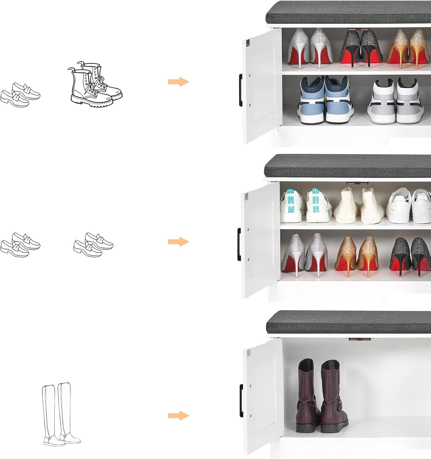 • Keep Your Shoes Organized: The depth of bench is 13.8 inches, which makes it easily to put in your shoes, meanwhile shoes of various heights can be placed by adjusting middle movable boards. The bench doors design ensures not only your privacy, but also a tidy space