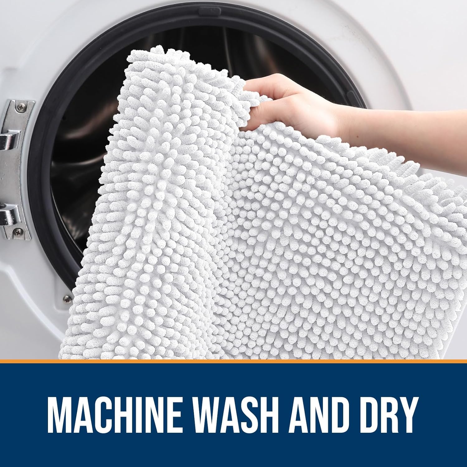 OLANLY Dog Door Mat for Muddy Paws 48x30, Absorbs Moisture and Dirt, Absorbent Non-Slip Washable Doormat, Quick Dry Chenille Mud Mat for Dogs, Entry Indoor Entryway Carpet for Inside Floor, White