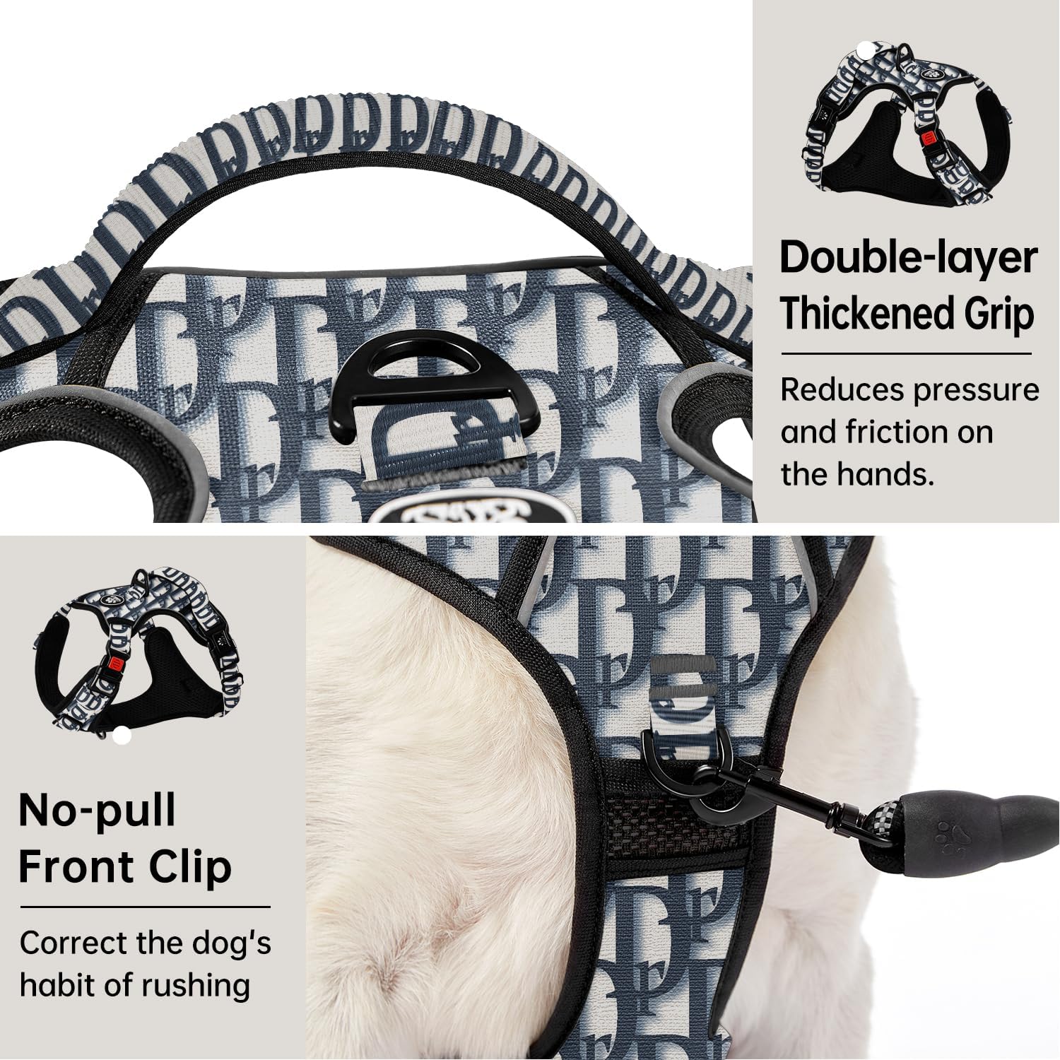 - ≡ FIT / NO CHOKE ≡ The dog harness is designed with 4 adjustable webbings, which can be adjusted according to the size of the dog's body to get a perfect fit. It makes the dog's chest evenly stressed and prevents dogs from choking effectively