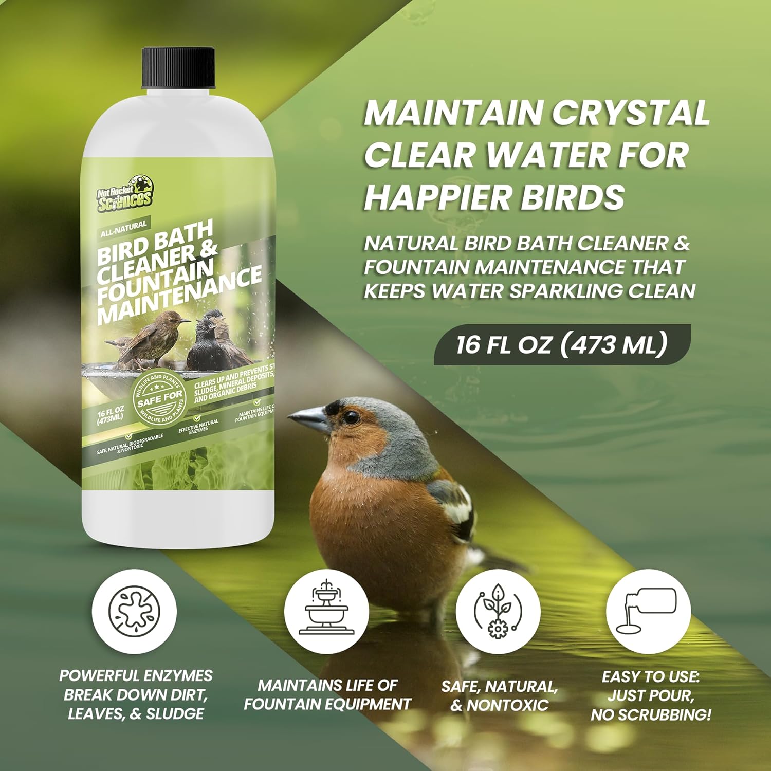 - SAFE FOR BIRDS: This bird bath & fountain clarifier is natural, non-toxic & safe for birds and wildlife. Itโs ideal as a birdbath & fountain maintenance cleaner that safely prevents organic build up.