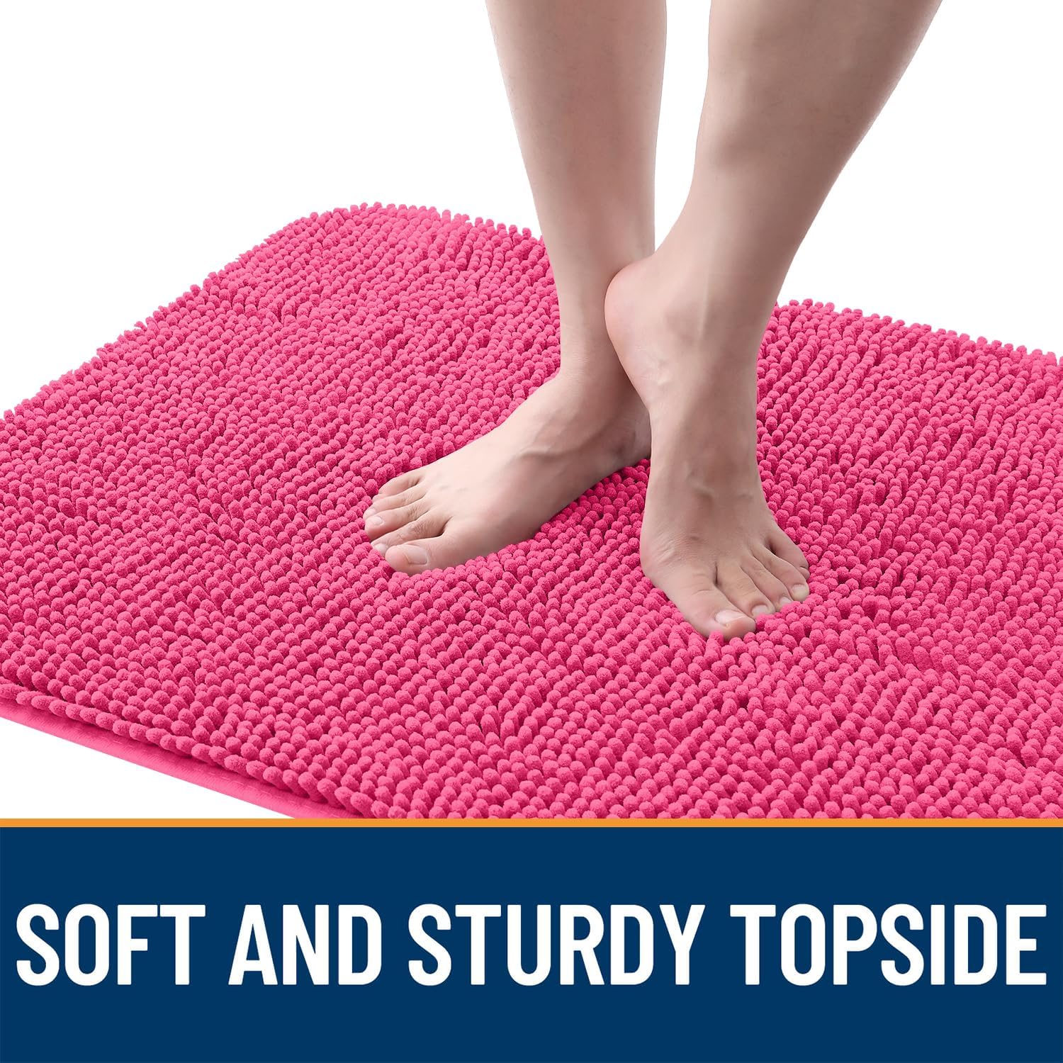 OLANLY Dog Door Mat for Muddy Paws 40x32, Absorbs Moisture and Dirt, Absorbent Non-Slip Washable Doormat, Quick Dry Chenille Mud Mat for Dogs, Entry Indoor Entryway Carpet for Inside Floor, Hot Pink