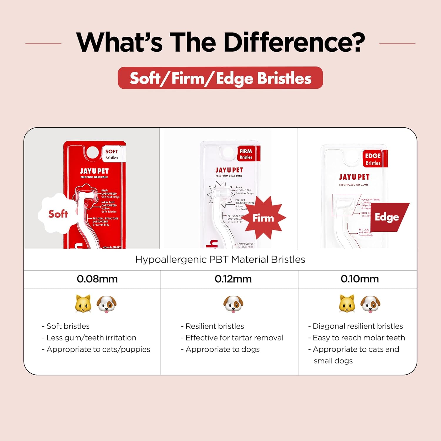 JAYU PET Dental Care Brush [Soft&Firm&Edge Bristles] - Toothbrush for Cat and Small Dogs, Removing Old Plaque and Tartar, Cat Dental Care, Cats Teeth Brushing & Easy Cleaning