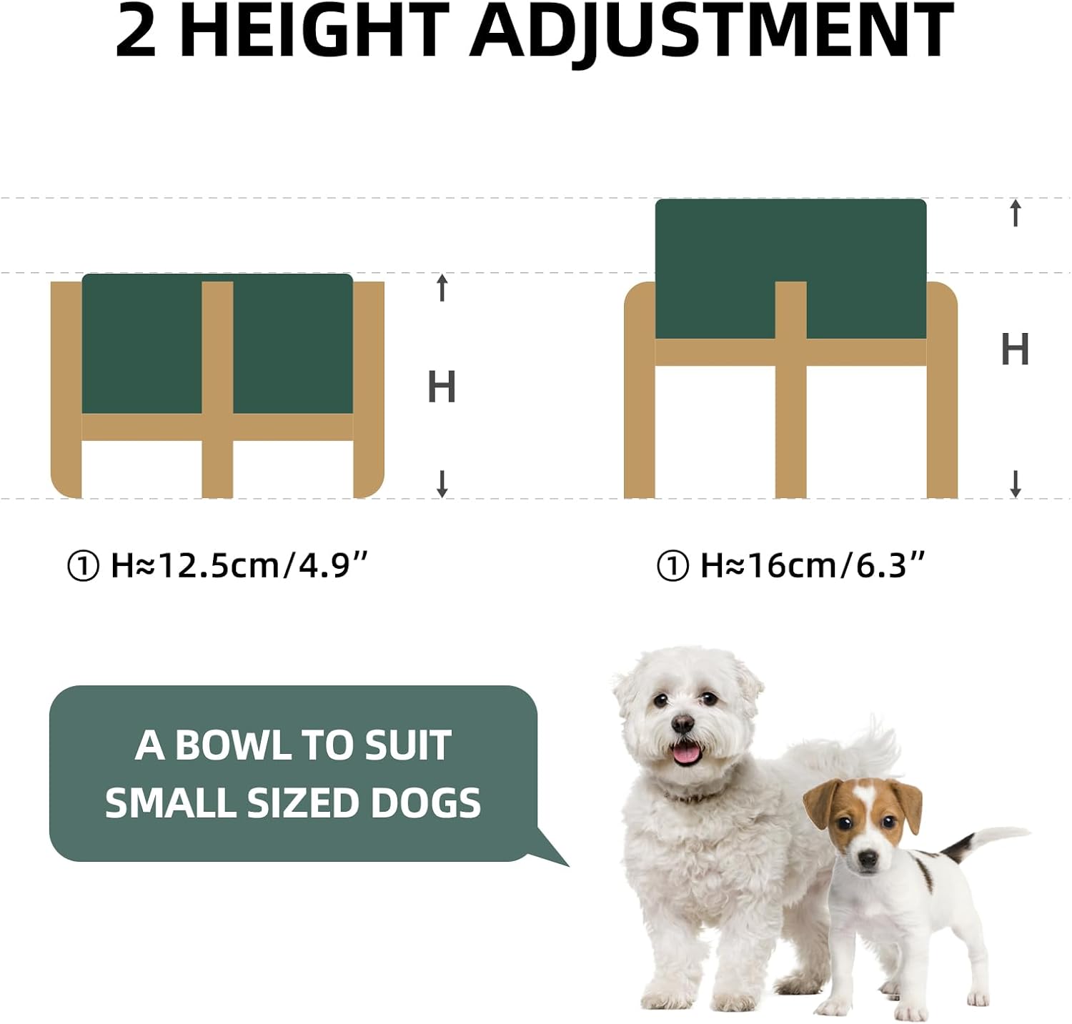 Ceramic Raised Double Bowls Set with Stand, 2 Heights Elevated, Food & Water Bowls for Small Breed Dogs, Weighted Dog Dishes, Pet Bowl(6.1'',28.7oz, Green)