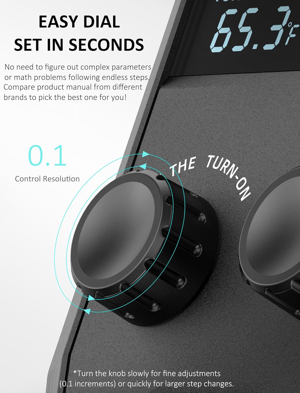 - 【Effortless Setup with Intuitive Design】 : WILLHI digital temperature-controlled outlet switch simplifies settings with two knobs for on/off temperature adjustments—no complicated menus. It provides precision within -58°F to 230°F (-50°C to 110°C), making it an ideal thermostat plug for various applications. By memorizing settings during power outages, it minimizes disruption, saves energy, and reduces setup time, providing a hassle-free user experience.