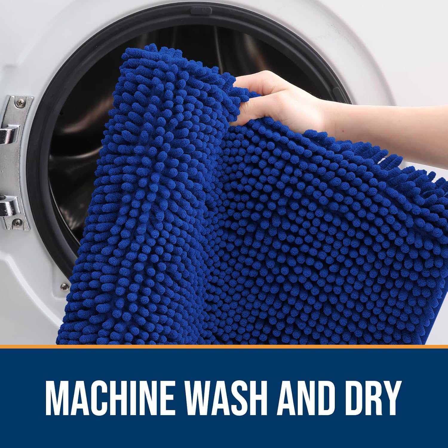 OLANLY Dog Door Mat for Muddy Paws 44x24, Absorbs Moisture and Dirt, Absorbent Non-Slip Washable Doormat, Quick Dry Chenille Mud Mat for Dogs, Entry Indoor Entryway Carpet for Inside Floor, Royal Blue