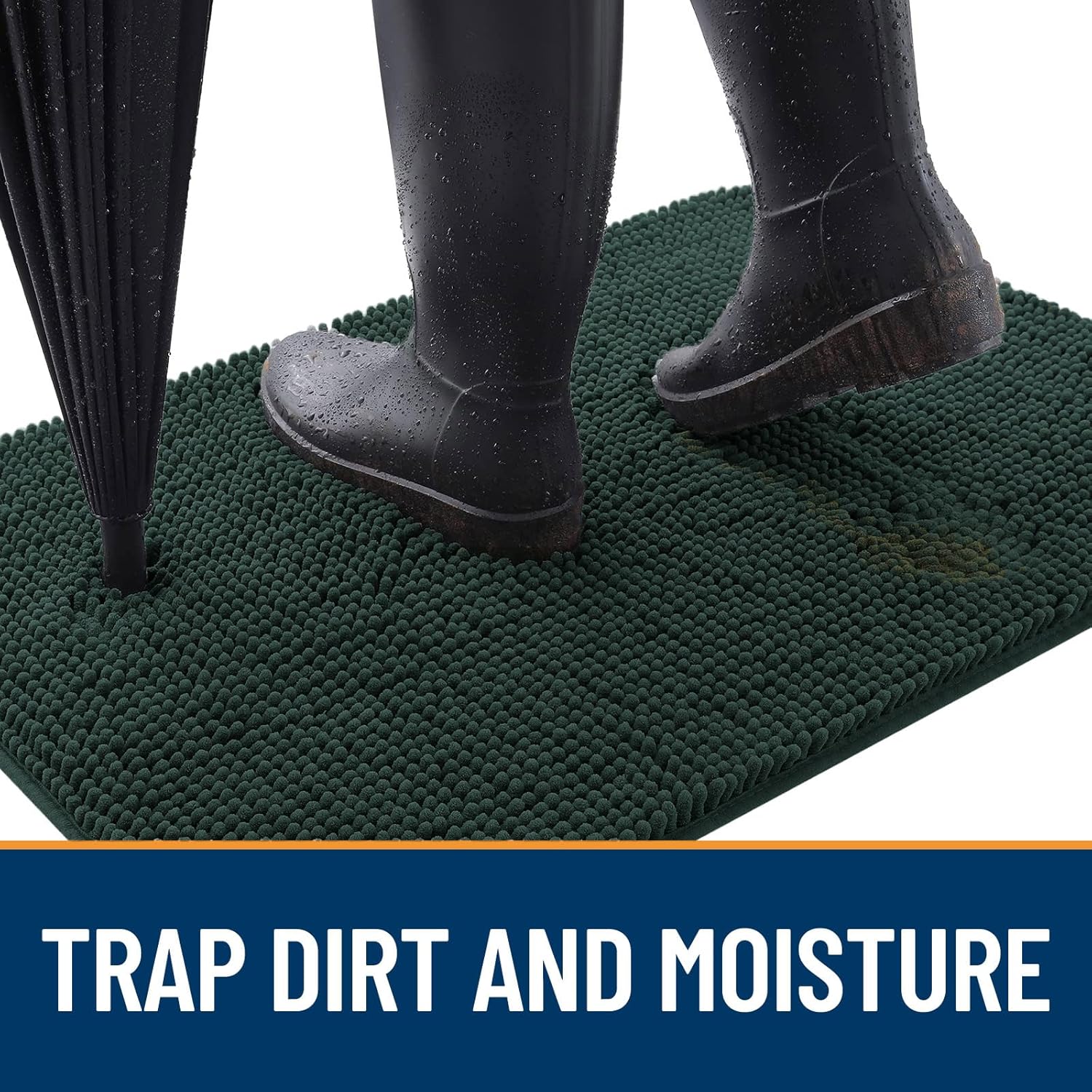 OLANLY Dog Door Mat for Muddy Paws 44x32, Absorbs Moisture and Dirt, Absorbent Non-Slip Washable Doormat, Quick Dry Chenille Mud Mat, Entry Indoor Entryway Carpet for Inside Floor, Blackish Green