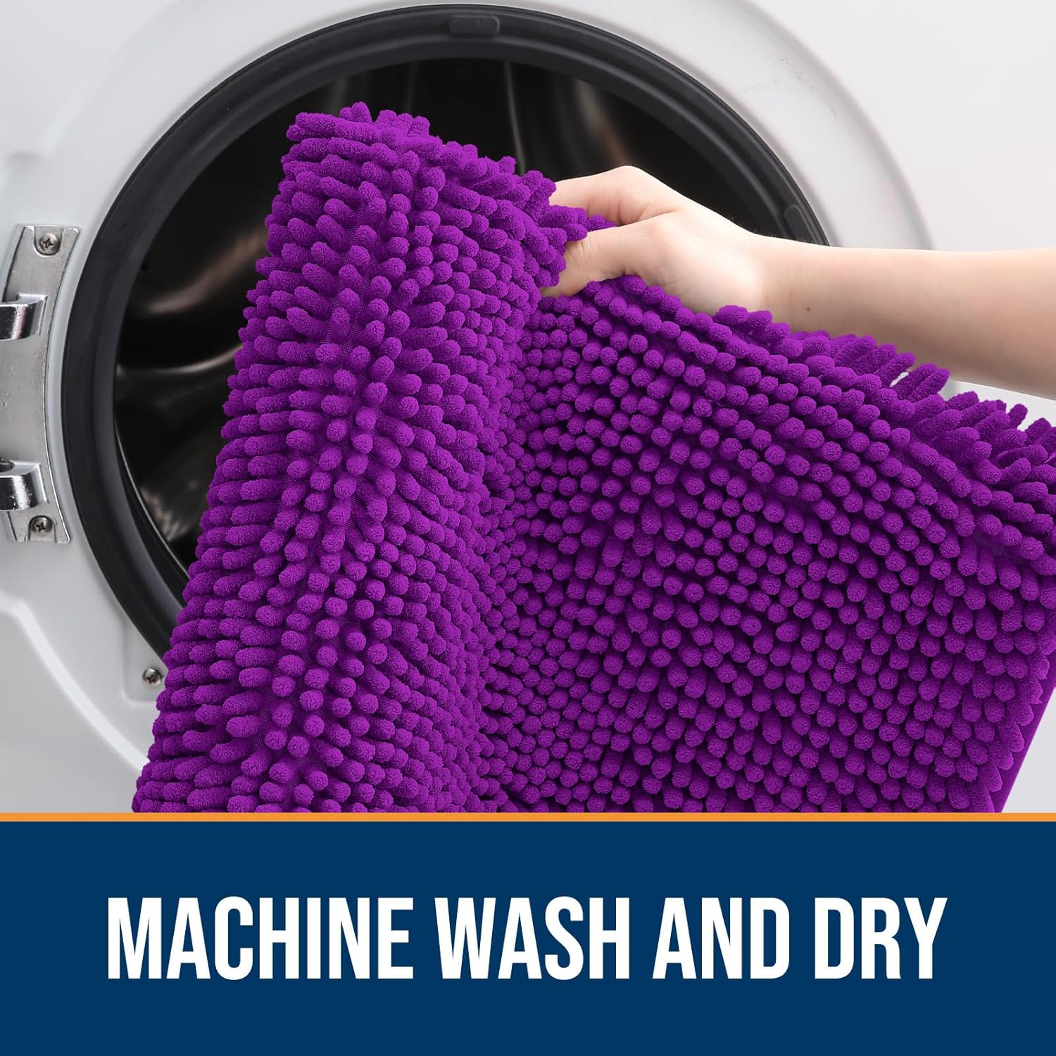 OLANLY Dog Door Mat for Muddy Paws 34x21, Absorbs Moisture and Dirt, Absorbent Non-Slip Washable Doormat, Quick Dry Chenille Mud Mat for Dogs, Entry Indoor Entryway Carpet for Inside Floor, Purple