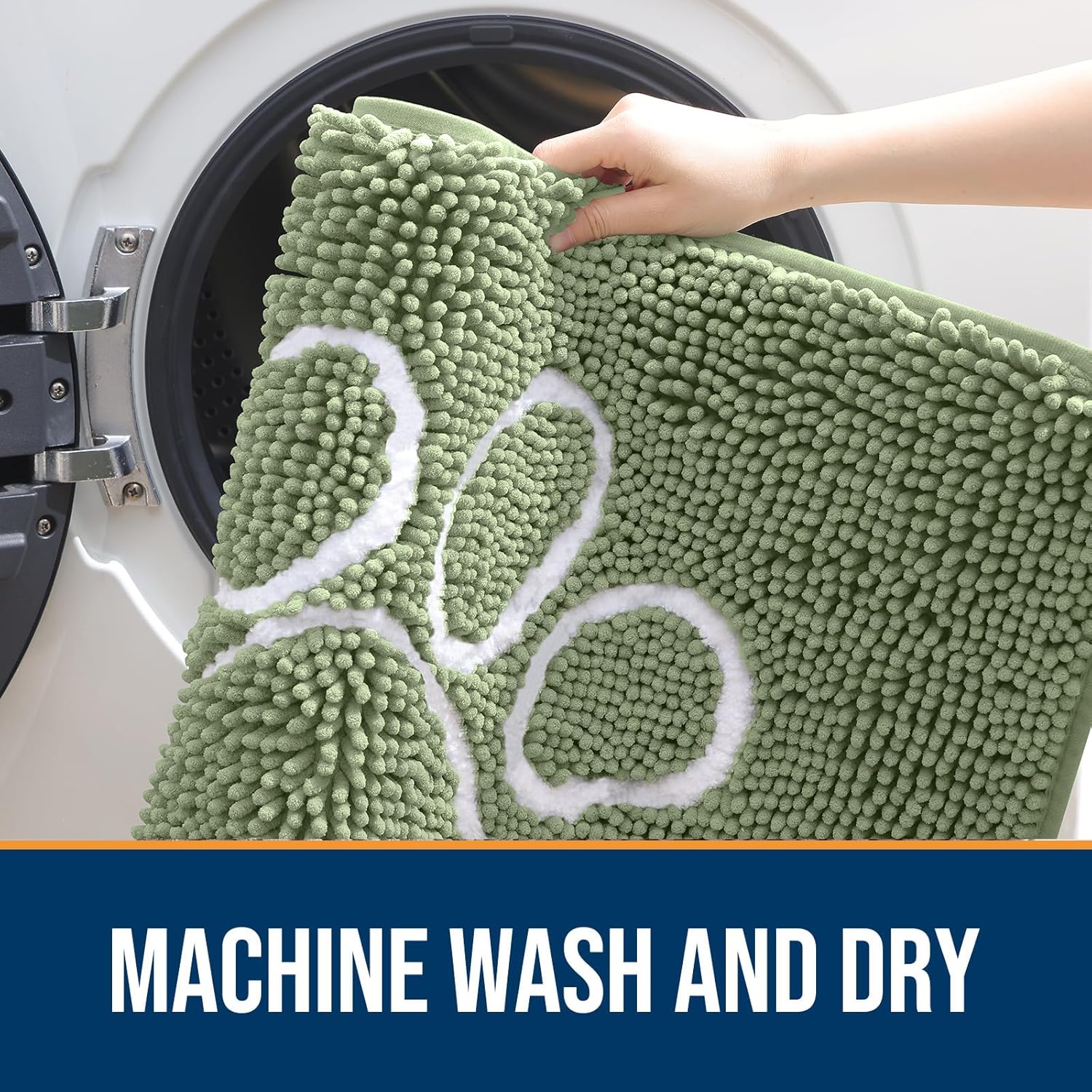 OLANLY Door Mat for Muddy Dog Paws 59x24, Ultra Absorbent Chenille Mud Doormat with Paw Print Design, Non-Slip Washable Doormat for Indoor Entryway, Quick-Dry Pet Bed Mats for Dirty Dogs, Sage Green