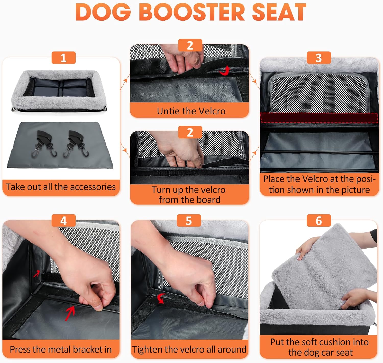 - ๐ถ[Cozy and Durable Material]: The dog booster car seat is crafted from durable Oxford cloth thatโs water-resistant, and durable. The plush rim is filled with soft material for your furry friend to rest their paws. With an air-circulating mesh design, the seat promotes smooth breathing, ensuring a comfortable ride. Additionally, The thick cushion provides a cozy ride, making it perfect for your pet's travel needs.