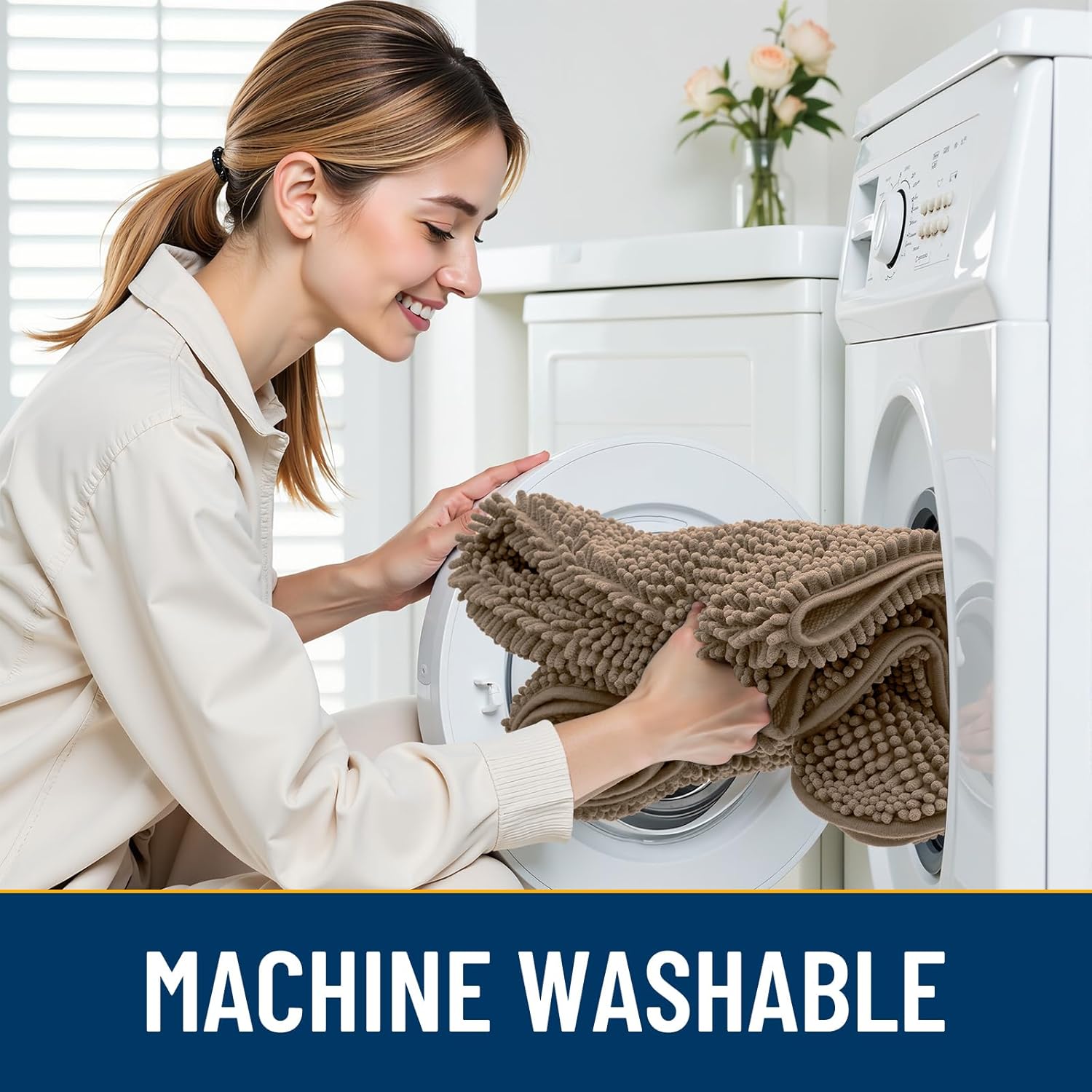 - [Easy Clean and Care] Our indoor door mat for muddy paws is also easy to clean and maintain. Simply shake off the dust or machine wash it for a deeper clean. It dries quickly, so you can be sure it's ready to use again in a short time. Please wash with cold water and dry naturally or at low temperature.