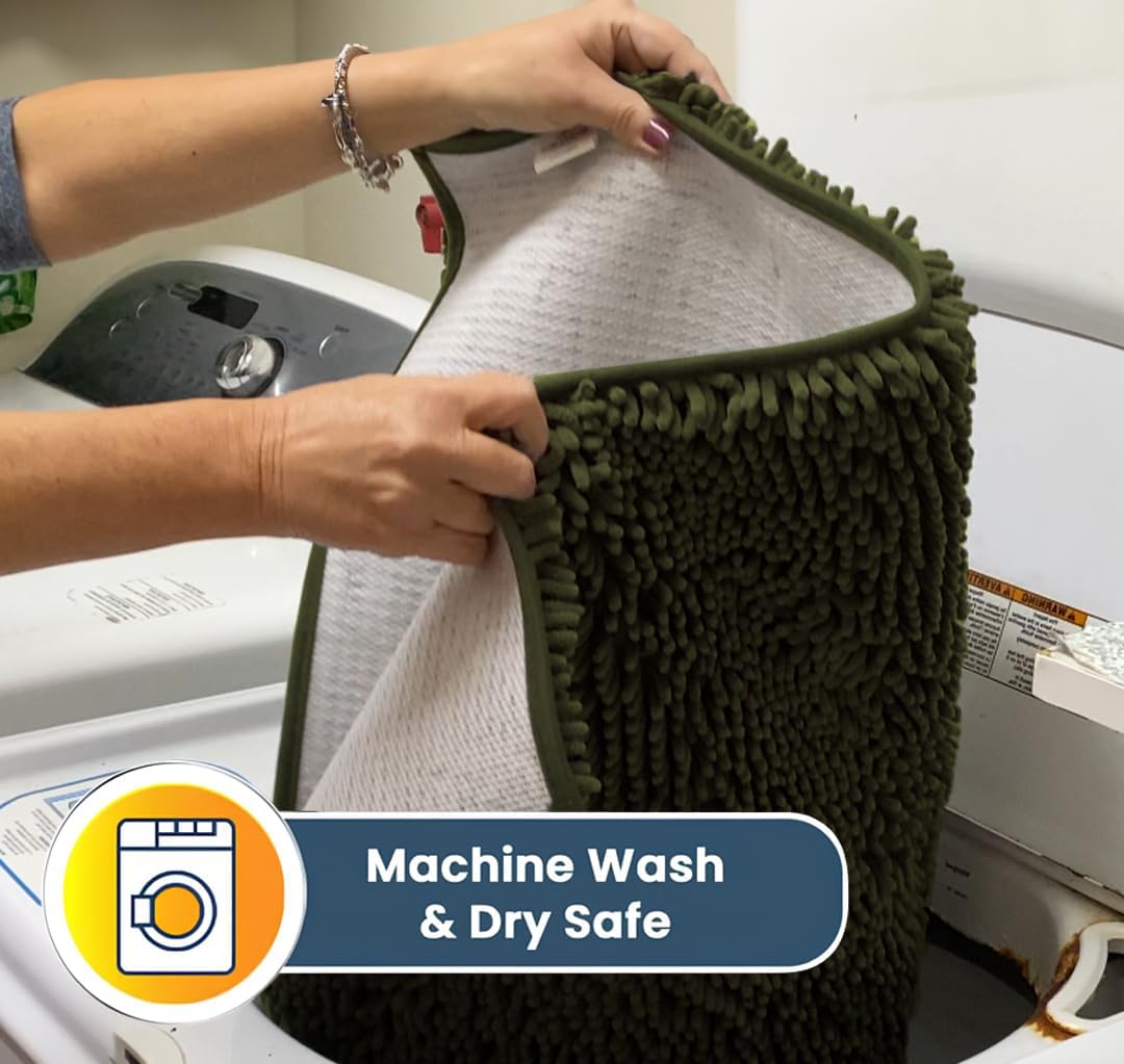 Muddy Mat® Shown on TV – Super Absorbent Door Mat Indoor, Microfiber Quick Dry Chenille Entryway Rug, Non-Slip Front Door Mat, Indoor Mats for Entryway, Machine Washable Pet Rug, Army Green 36"x60"