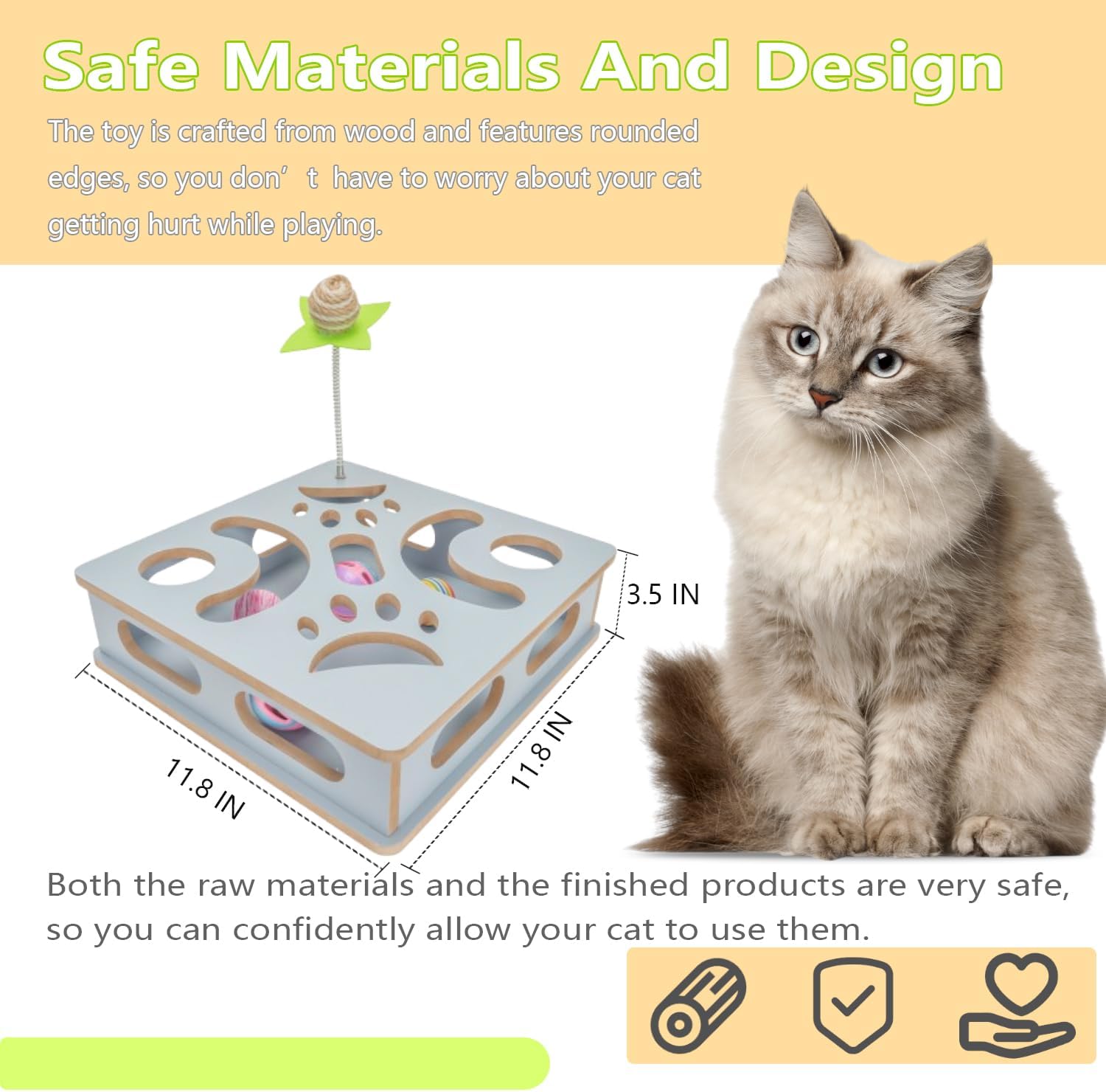 - [Safe Materials and Design] Made from durable wood composite board with no added chemicals, this toy is built to last. Its smooth surface and rounded corners ensure your cat stays safe while playing. The rustic design not only provides fun for your cat but also adds a charming touch to your home decor.