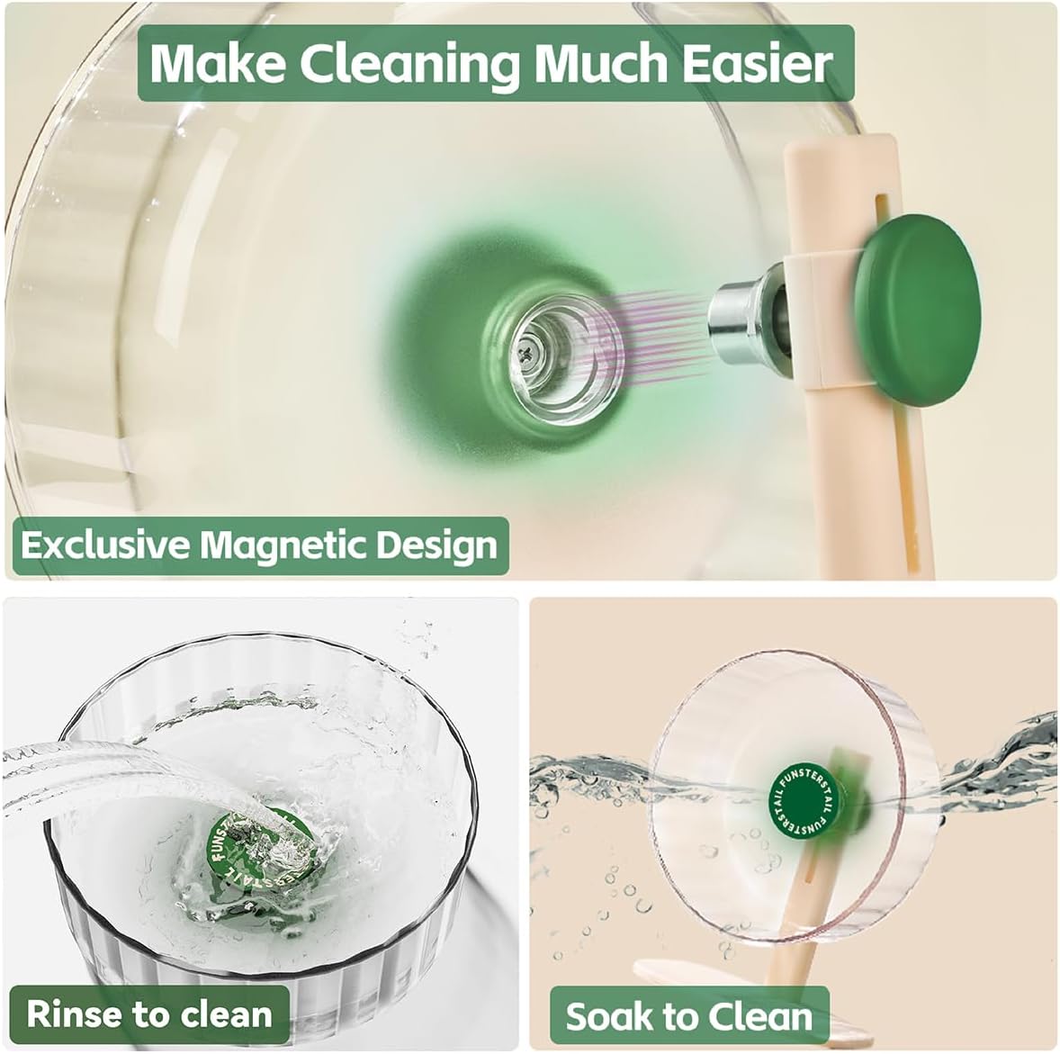 - Easy Disassembly & Squeak-Free Cleaning: Detach the magnetic hub in seconds for thorough washing. No sand buildup or post-cleaning squeaks—ideal for glass tanks or bedding-heavy habitats